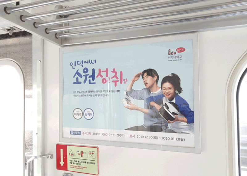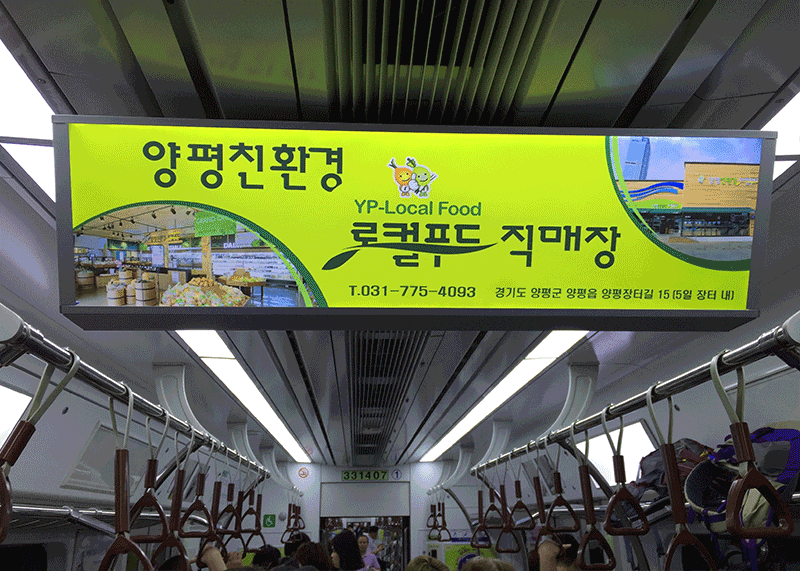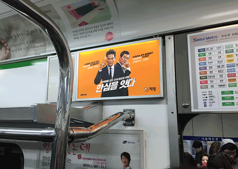 지하철차내 광고는 타 매체에 비해 많은 광고를 부탁할 수 있어 타겟 공략 및 광고 효과가 높아 효과적인 노선 분석으로 효율적인 광고가 가능하며 약 1000만명의 이용자에게 노출 되어 높은 광고 효과를 볼 수 있기 때문에 기업 이미지나 브랜드 런칭 시 다양한 매체 활용으로 주목률 상승에 도움이 되어 기업에 대한 호의적인 이미지 형성에 효과적인 매체입니다..